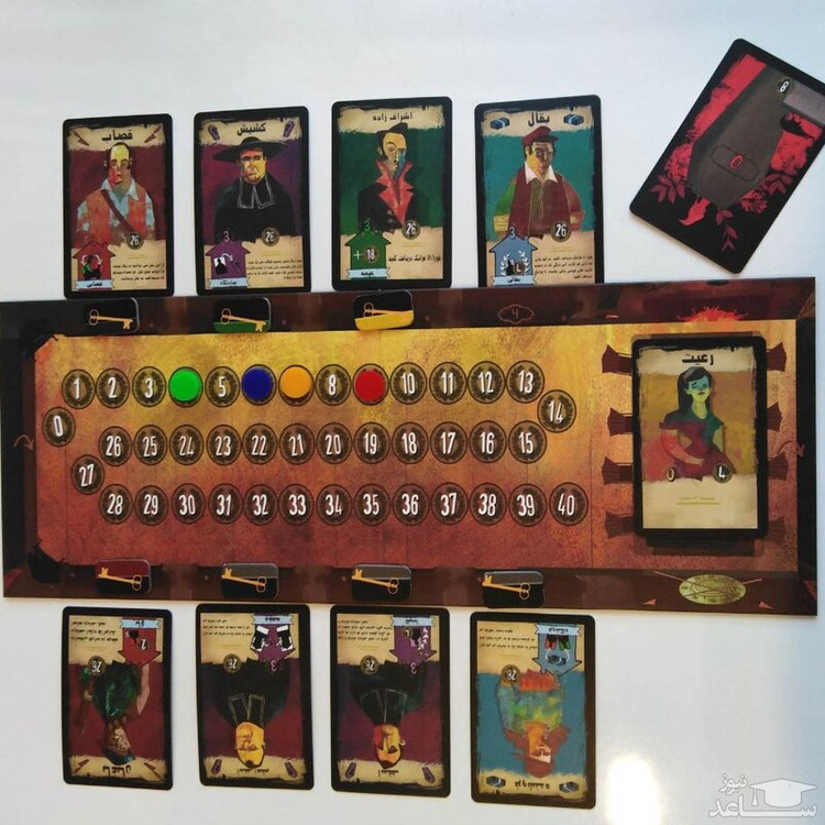 محتویات بسته: 78 عدد کارت مهمان (70 عدد مسافر و 8 عدد رعیت) + 4 عدد کارت کمکی + یک عدد برد بازی (مهمانخانه) + کارت نفر اول + 30 عدد اسکناس 10 فرانکی + 32 عدد توکن کلید (روم سرویس) در 4 رنگ + 4 عدد توکن کلید سفید نوع بسته بندی جعبه