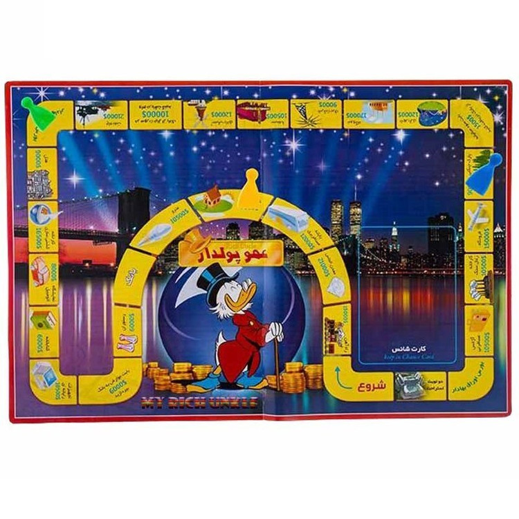 محتویات بسته: 4 عدد مهره رنگی 1 عدد تاس صفحه بازی 42 عدد کارت اسکناس و پول با مبالغ مختلف