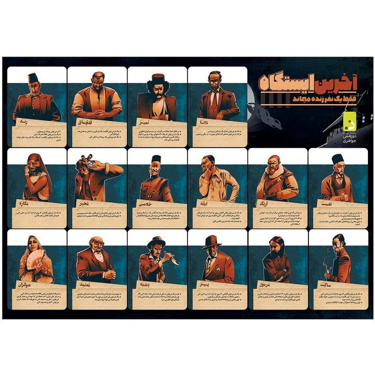 آخرین ایستگاه یگ بازی نقش مخفی و استنتاجی، همراه با بحث و گفت و گو، چالش های هیجان انگیز و تعامل بالا بین بازیکنان است. هربازیکن یک پاکت دریافت میکند که حاوی دو کارت هست، کارت جناح و کارت شخصیت. جناح مشخص میکند که بازیکن یار مروان خان هست یا نه و کارت شخصیت هم ویژگی و قابلیت او را مشخص میکند. بازی مرحله به مرحله پیش می رود و یکی یکی بازیکنان حذف می شوند تا در نهایت یک نفر و یا یک جناح زنده بماند. – تم جدید و گیم پلی كاملا منحصر بفرد و متفاوت از هر بازی نقش مخفی دیگر – 100٪ ايرانى و طراحى شده توسط اشكان جواهرى و مجموعه دورهمى – دارای مکانیزم های جذاب، سناریو محور و بدون نیاز به گرداننده – تکرار پذیری بسیار بالا و پویا بودن بازی – قابلیت تنظیم درجه سختی تاکید می کنیم این بازی برای افراد بالای 16 سال طراحی شده است. اگر جمع پایهای دارید که چند وقت یک بار جمع میشید و بازی میکنید؛ اصلاً این پکیج چشم نواز رو از دست ندید. از طرف دیگه، اگر دلتون بازی نقش مخفی میخواد ولی تعدادتون به ده نفر نمیرسه؛ باز آخرین ایستگاه یک انتخاب مناسبه.(این رو منی که خاطرخواه این بازی هستم اعلام میکنم). در صورتی که عنوانی مثل آخرین ایستگاه، حتی در یک جمع 6 تا 8 نفره هم میتونه غوغا به پا کنه. به کافهدارهای عزیز هم توصیه اکید میکنم. وجود این بازی در آرشیوتون میتونه لحظات تکرار نشدنی و ایونتهای محشری خلق کنه.