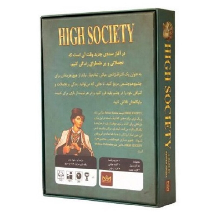 در بازی های سوسایتی (High Society) بازیکنان در نقش پولدارانی خوش گذران میباشند. بازیکنان باید در مزایدهها شرکت کنند و سعی در بالا بردن ثروت و دارایی خود داشته باشند. البته که باید مراقب باشند در میان این مزایدهها و خوش گذرونیها تمام پولهای خود را از دست ندهند. بازی های سوسایتی یک بازی کوتاه و بسیار جذاب خانوادگی است که هر گروه از بازیکنان را میتواند شیفتهی مکانیزمها و گیم پلی روان خود کند.