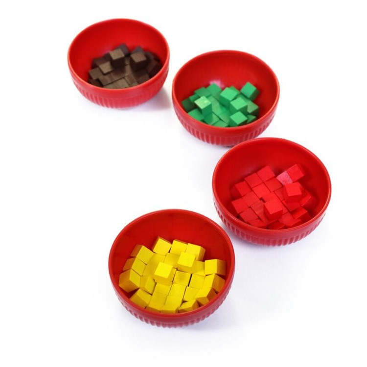 5 کارت کاروان 10 کارت کاروان 36 کارت امتیاز 43 کارت تجارت 105 مکعب 4 ظرف ادویه سفالی 20 سکه