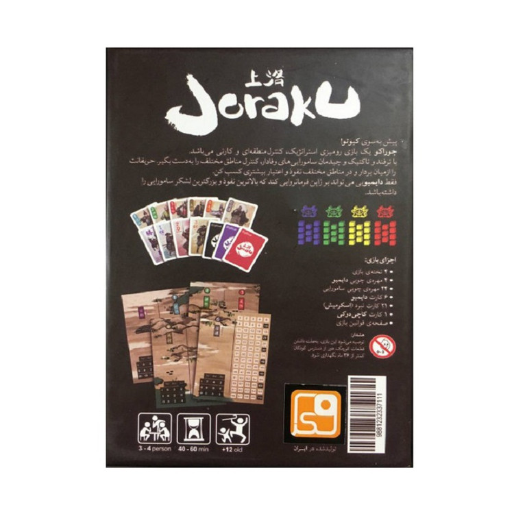 در این بازی بازیکنان با فریفتن یکدیگر و استفاده از سامورایی ها و قدرت نظامی خود، تلاش میکنند تا کنترل خود را بر روی نواحی مختلف ژاپن گسترش دهند و با کسب محبوبیت حکمرانی ژاپن را در دست بگیرند. بردگیم جوراکو Joraku یک بازی رومیزی استراتژیک با مکانیزم قلمروگیری است که با تم تاریخی و در دوران ژاپن عصر شوگان جریان دارد.