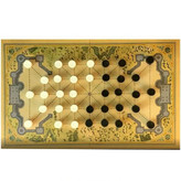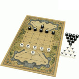 زمین بازی تداعی کنندهی میدان نبرد است که هر سمت آن، به یک سپاه یا بازیکن تعلق دارد. مهرههای بازی نیز به صورت دو طرفه طراحی شدهاست. طرف سادهی مهرهها به منظور سربازان ساده استفاده میشود. با ارتقا یافتن سربازان نیز طرف طرحدار مهرهها مورد استفاده قرار میگیرد. همچنین در صفحهی بازی خطوط راهنمایی ترسیم شدهاست که شما را برای حرکت دادن مهرهها هدایت خواهند کرد.