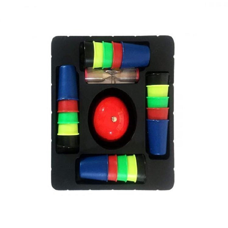 شیوه مسابقه به این صورت است که با انتخاب یکی از کارت های الگو، کودکان باید سعی کنند به سرعت لیوان ها را بر اساس الگوی نشان داده شده در کارت بچینند و هر کس سریع تر اینکار را انجام دهد با به صدا در آوردن زنگ، برنده شدن خود را در این مرحله اعلام می کند. در پایان، برنده بازی کسی است که کارت های بیشتری را از آن خود کرده باشد.