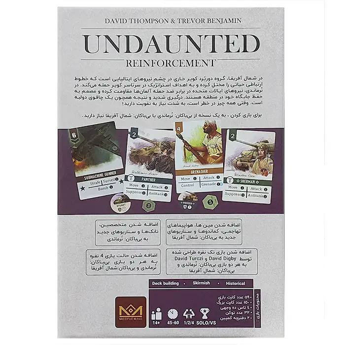 بی باکان: قوای کمکی، افزونه است که قوانین، سناریوها و نیروهای تازه را به بازی اضافه می کند. از قدرت تانکهای آلمان و آمریکایی بهره بگیرید و ببینید در بیباکان:نرماندی، گروهانهای تقویت شده تان چگونه در مقابل دشمن عمل خواهند کرد. یا اینکه از مین ها، هواپیماهای تهاجمی و سایر نیروهای جدید استفاده کنید تا در بی باکان شمال آفریقا دشمنان را از میان بردارید. فرقی نمیکند کدام نسخه از بی باکان را دارید (نرماندی یا شمال آفریقا)، در هر صورت،با این افزونه میتوانید بی باکان را به شکل 4 نفره تجربه کنید یا اینکه توانایی خودتان را در مقابل حالت تک نفره طراحی شده توسط David Turczi محک بزنید.