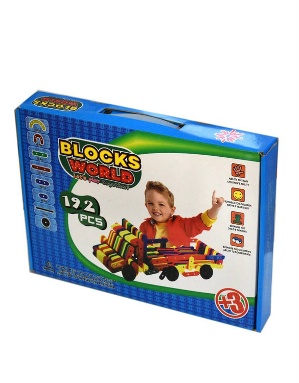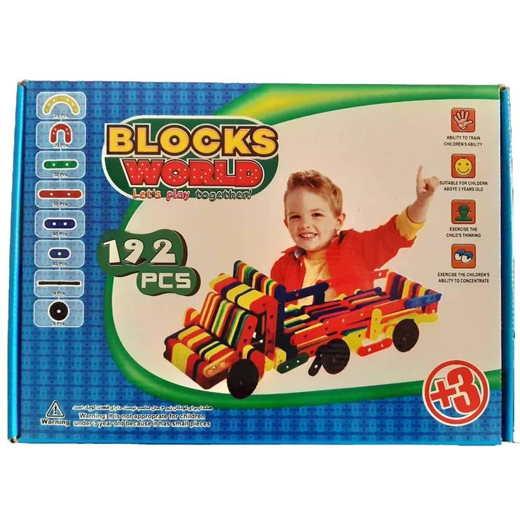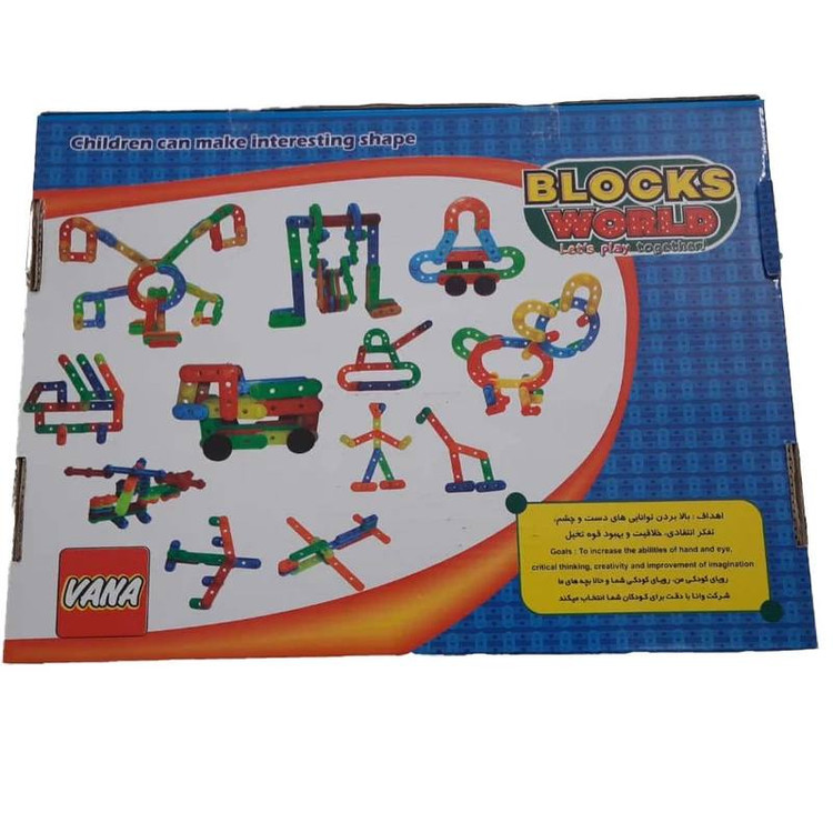 بازی دنیای بلوک از سری بازی های ساختنی چیدنی شرکت بازی سازی وانا شامل 192 قطعه رنگی(180تکه ساختنی ،8 عدد چرخ و 4 عدد محور چرخ)، بالا بردن توانایی های دست و چشم، تفکر انتقادی، خلاقیت وبهبود قوه تخیل، اشنایی با اشکال مختلف با تنوع رنگی زیبا مناسب جهت تشویق کودکان به استفاده از قوه تفکرو بروز استعداد های کودکان.لگو ساختنی دنیای بلوک تعداد 192 قطعه پیشنهاد ما بعنوان بالا بردن خلاقیت فرزندان می باشد .کودک با لگوها چیزی می سازد و هر زمانی که دوست داشت آن را بدون ترس و واهمه خراب می کند.چون کودک در ساختن و خراب کردن آزادی عمل دارد احساس خستگی نمی کند .