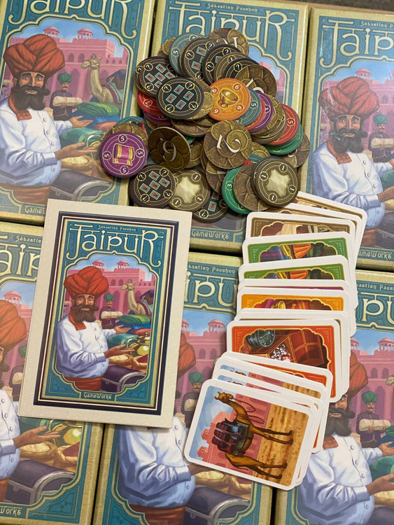 بازی کارتی Jaipur یک بازی دو نفره ی خانوادگی میباشد. در این بازی شما در نقش دو تا از بزرگترین تاجر های شهر جیپور هستید. که سعی دارید با به دست آوردن نشانی به دربار پادشاه راه یافته و با او دیدار کنید. شما باید با خرید و فروش کالا های مختلف دارایی خود را افزایش دهید. برای مبادله نیز میتوانید شتر های خود را با کالا های دیگر معاوضه کنید. در پایان هر راند ثروتمندترین تاجر یک نشان برتری میگیرد. برای ورود به دربار شما به دو نشان نیاز دارید. بازی Jaipur یک بازی بسیار جذاب و سرگرم کننده است که برای بازی به زمان کوتاهی نیاز دارد. یعنی شما میتوانید در یک زمان کوتاه هم این بازی فوق العاده را بازی کنید.