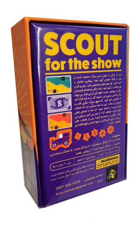 بازی فکری گروه ایران وازیگ «اسکات Scout»، در اسکات شما به عنوان رهبر یک سیرک انتخاب شده اید با استفاده از اعضای سیرک خود باید نمایشی ترتیب دهید که با رقبای خود رقابت کنید و آنها را شکست بدهید. هر کارت در دست شما نقش خاصی دارد با اضافه کردن کارت جدید یا خارج کردن کارت از دستتان سعی کنید زنجیرهای قدرتمند درست کنید تا با آن بتوانید نمایشی فوق العاده ارائه دهید که سیرک دیگری نتواند از آن پیشی بگیرد. آیا با اعضای فعلی خود نمایش میگذارید؟ یا با اضافه کردن اجزا جدید؟ با انتخاب درست حس شگفت انگیزی خلق کنید. در این بازی بازیکنان به نوبت یک سری کارت قوی تر از مجموعه قبلی بازی می کنند و کارت های مجموعه قبلی را برمیدارند تا امتیاز بگیرند. کارتهای در دست شما ممکن است مجموعههای قدرتمندی تشکیل دهند، اما نمیتوانید این کارتها را به ترتیب دلخواهتان مرتب کنید.به طور هوشمندانه بازی و اسکات کنید تا بتوانید مجموعه قدرتمندی از کارت ها را کنار هم قرار دهید. تعداد دورهایی که بازی می کنید مطابق با تعداد بازیکنان است و بازیکنی که بالاترین امتیاز را داشته باشد برنده می شود.