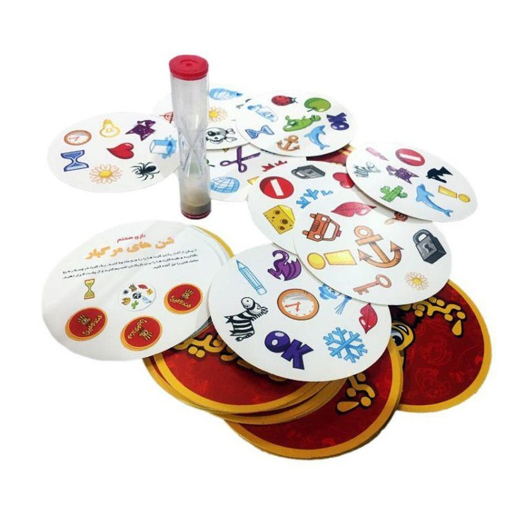 این محصول شامل 55 کارت بازی یک عدد ساعت شنی و کارتهای راهنمای بازی است که داخل یک جعبه دایره ای شکل فلزی قرار دارد.تندو تیز یک بازی کارتیه که در هر کارت اون 8 شکل مختلف وجود داره. بین هر دو کارت بازی همیشه فقط یک شکل مشترک هست. اون شکل مشترک را باید بین دو کارت مختلف با چشم های تیزت پیدا کنی. باید بتونی این کار رو خیلی تند انجام بدی تا برنده بشی، چون ساعت شنی زمان بازی رو خیلی دقیق حساب می کند این بازی یکی از محبوب ترین بازی های فکری گروهی در سراسر دنیاست. این محصول مناسب رده سنی بالای شش سال است و به تقویت تمرکز و سرعت عمل کودکان کمک می کنید. در سفر ها و دور همی ها، تند و تیز یکی از هیجان انگیز ترین تفریح های گروهی را برای بچه ها و بزرگتر ها رقم می زند.