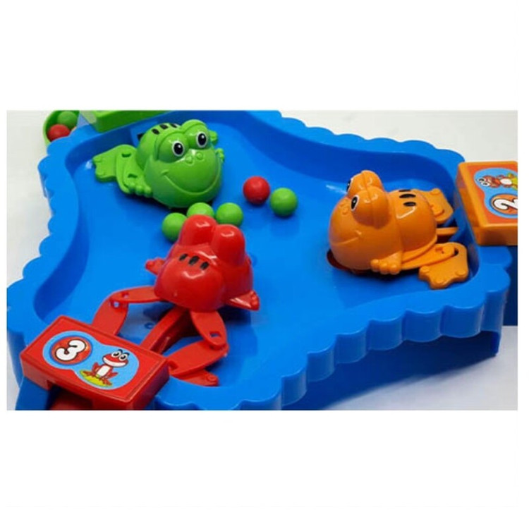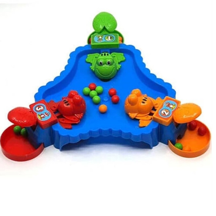 قورباغه های شکمو همون چیزی هست که حسابی می تونه بچه ها رو هیجان زده کنه. سه تا قورباغه ی بامزه ی خوشگل که روی یک صفحه ی پلاستیکی به شکل برکه نصب شدن. این قورباغه ها خیلی گرسنشونه و تا توپ های رنگی رو می بینند شیرجه میزنن تا زودتر توپ ها رو بخورن و سیر بشن. این وسط هر قورباغه ای که توپ بیشتری خورده باشه برنده ی بازی میشه.