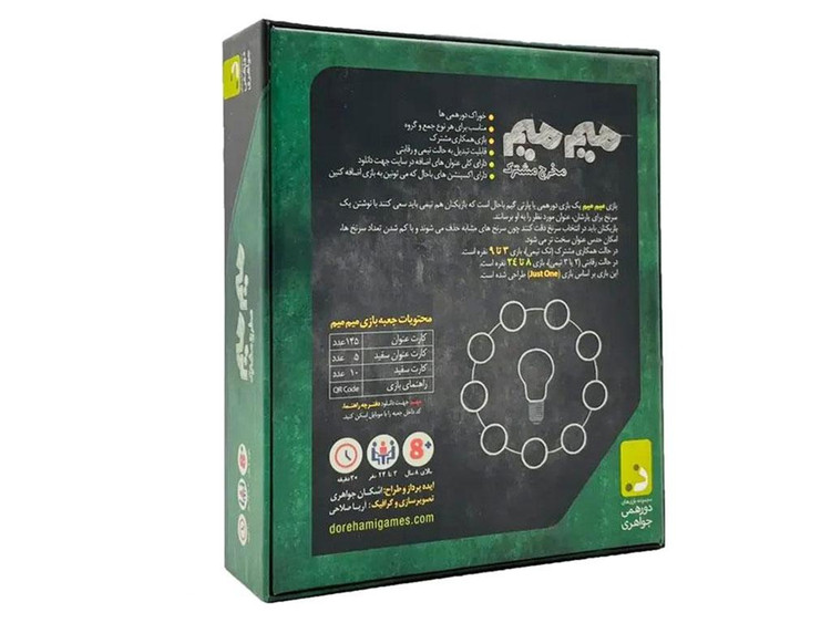 بازی میم میم یک بازی دورهمی با پارتی گیم باحال است که بازیکنان هم تیمی باید سعی کنند با نوشتن یک سرنخ برای یارشان عنوان مورد نظر را به او برسانند.بازیکنان باید در انتخاب سرنخ دقت کنند چون سرنخ های مشابه حذف میشوند و با کم شدن تعداد سرنخ ها امکان حدس عندان سخت تر میشود.درحالت همکاری مشترک ( تک تیمی)بازی 3 الی 9 نفره است در حالت رقابتی (2 یا 3 تیمی) 8 تا 24 نفره است.این بازی بر اساس JAST ONE طراحی شده است