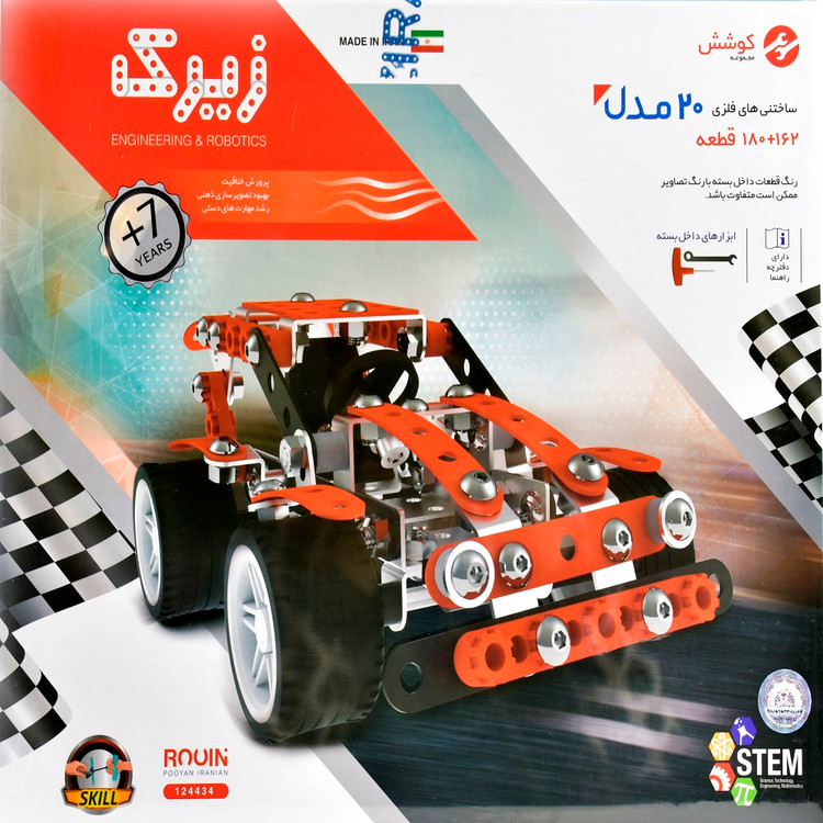 سایر توضیحات : مناسب گروه سنی 7 سال به بالا می باشد ., شیوه بستن قطعات به وسیله پیچ ، واشر فنری و مهره و با استفاده از آچار آلن و تخت می باشد ., قابلیت ساخت 20 مدل ماشین با لوازم داخل جعبه وجود دارد