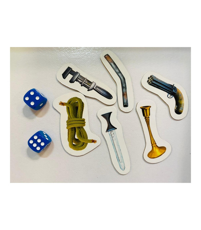 همهی توکنهای آلت قتل و توکنهای شخصیت رو در وسط صفحهی بازی (منزل مقتول) بذارین (حتی اگه تعداد بازیکنها کمتر از ۶ نفره)!