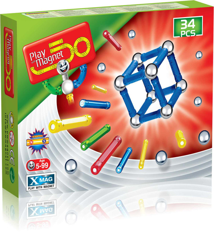 اسباب بازی ساختنی مگنت34 آهنربایی رنگبندی و کیفیت قابل قبول محصول از ویژگی های چشم گیرآن است.این محصول آهنربای خمیده ندارد. یک محصول کمک آموزشی شاد با ساختار ساده است که تنها از استوانه های مغناطیسی و گوی فلزی تشکیل شده است.بازی با مغناطیس ها یک سرگرمی خانوادگی است و همه افراد خانواده از 5 تا 99 سال را گرد هم جمع میکند.این بازی میتواند در آموزش اصلی دروس همچون ریاضی شیمی فیزیک عمران و معماری به معلمان و دانش آموزان کمک کند.