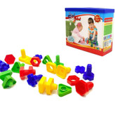 اسباب بازی های پیچ کردنی نسبت به دیگر اسباب بازی ها امتیازاتی دارد. پیچ و مهره آموزشی برای بهبود مهارت های کودک در استفاده از انگشتان خود مفید است. از جمله این که کودک قسمت های مختلف و متفاوت اسباب بازی را با هم جور می کند . البته او باید این کار را طبق قاعده مشخصی انجام دهد . کودک باید انگشتان خود را به گونه ای کنترل کند تا بتواند با حرکت های دورانی پیچ را در داخل مهره ها بچرخاند . این اسباب بازی ساختنی برای خردسالان 12 ماه به بالا مناسب است. پیچ و مهره چیندر دارای 24 قطعه رنگی بزرگ شامل 12 عدد پیچ و 12 عدد مهره با رنگ های شاد و جذاب برای کودکان است. خرید اسباب بازی پیچ و مهره به پرورش و تقویت مهارت دست ها و حرکات ظریف انگشتان و هماهنگی چشم و دست کودک کمک می کند.