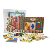 محتویات بازی: 5• صفحهی بازی 1 عدد • صفحهی بازیکنها 10 عدد • کارت 41 عدد • نشان 60 عدد • مهرهی شمارنده 60 عدد • مهرهی کلاف 80 عدد • آدمک نفر اول 1 عدد • لچک و نرنج 116 عدد • تاس 1 عدد • دفترچهی راهنما 1 عدد • کتابچهی روایت قالی 1 عدد