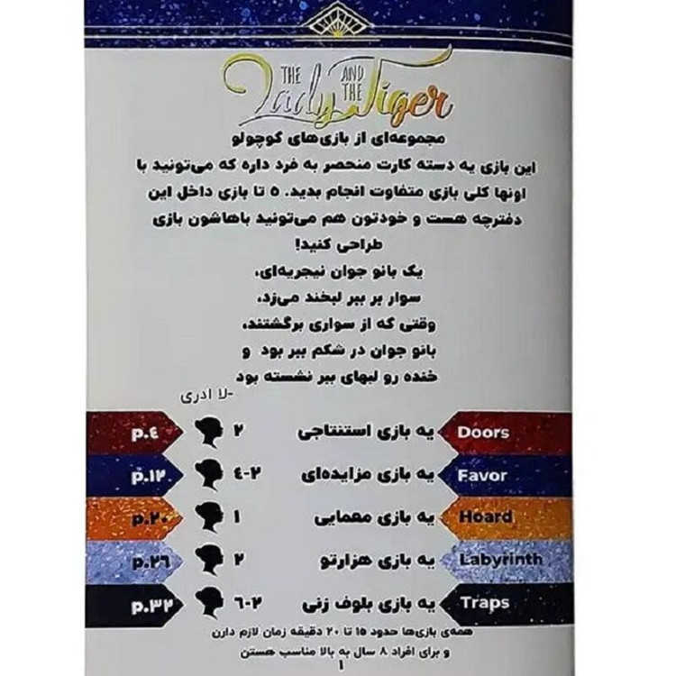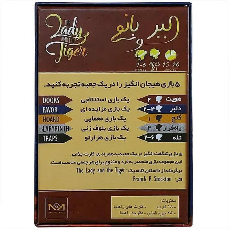 بازی فکری ببر و بانو با الهام از داستان کوتاه کلاسیک" بانو یا ببر"طراحی شده است. بازی ببر و بانو شامل ۵ مدل بازی متفاوت در یک جعبه میباشد.